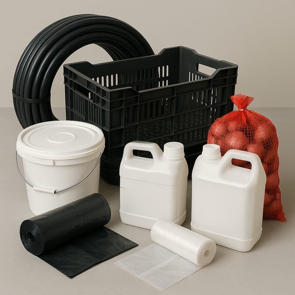 Nous proposons une large gamme de produits de qualité : cageots de récolte, bidons, seaux, sacs d’oignons, tuyaux PEHD, tubes orange et films plastiques.